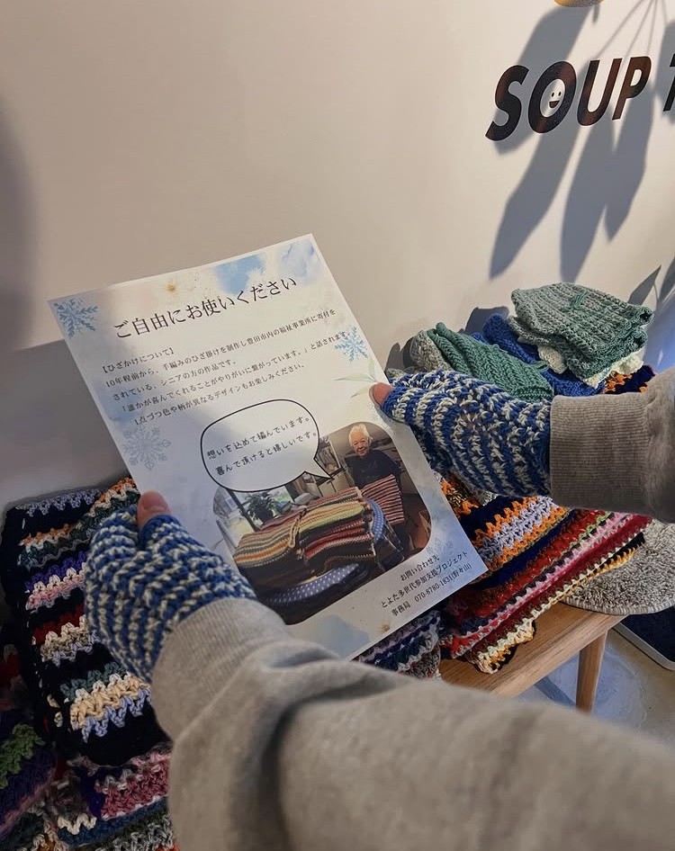 冬場は土間がと~っても冷える多世代事務局でも、清水さんのひざ掛けをスタッフや来訪者の皆さんが愛用していますよ!