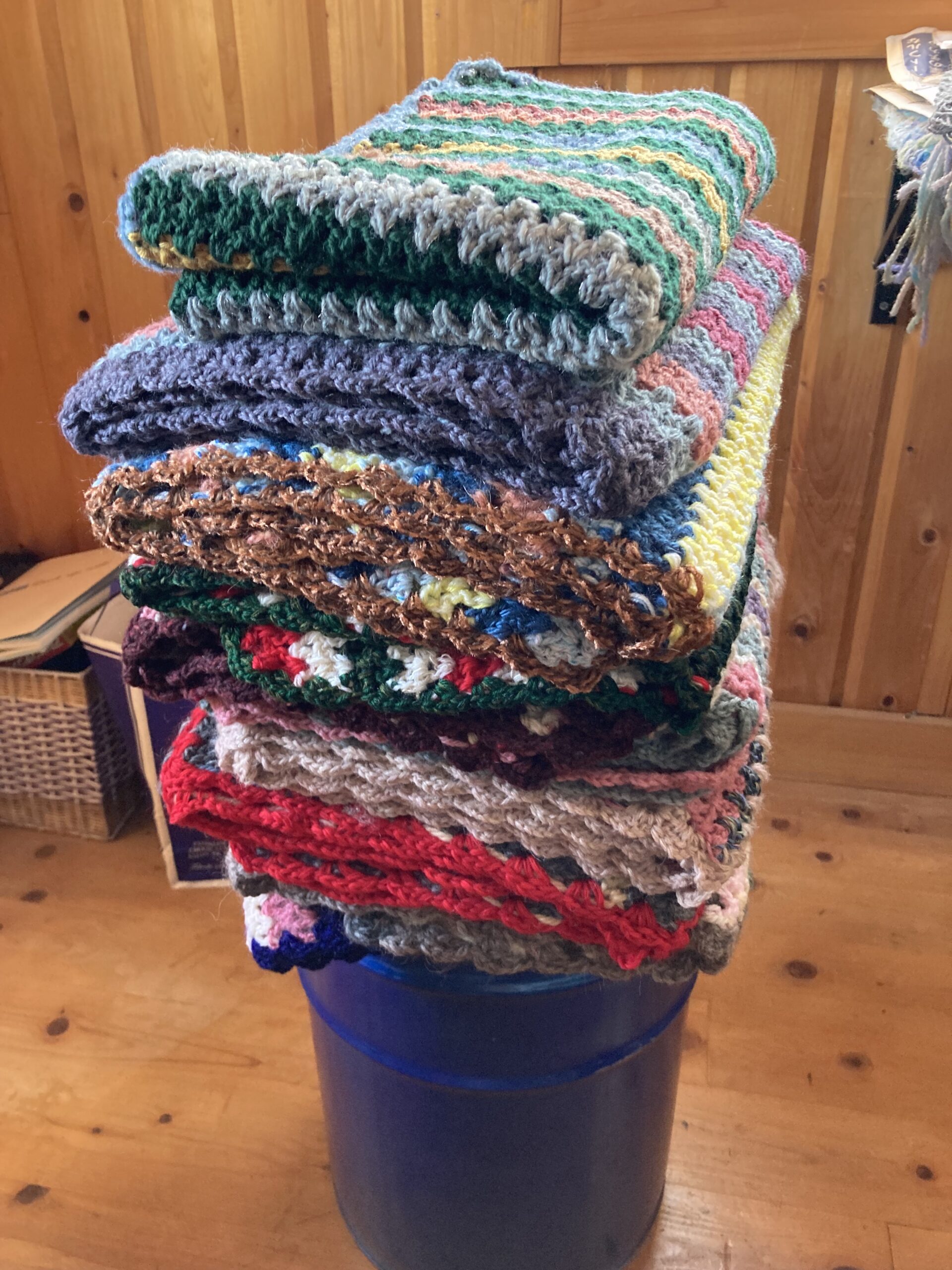 1年間で30枚~50枚のひざ掛けと、30枚程のアームフォーマーを作成してくださいました。