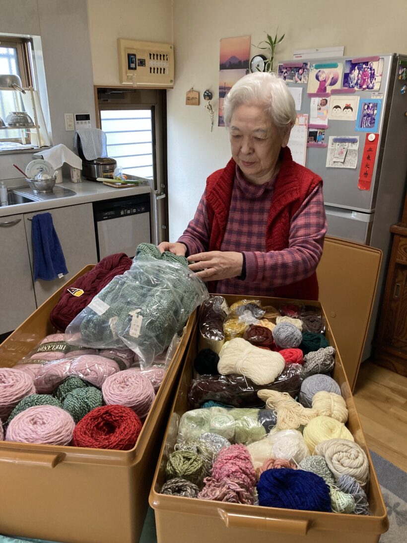 材料の毛糸は、ご自身で購入したり、市の不用品紹介に登録したりして集めていましたが、最近はなかなか材料が集められず困っていました。