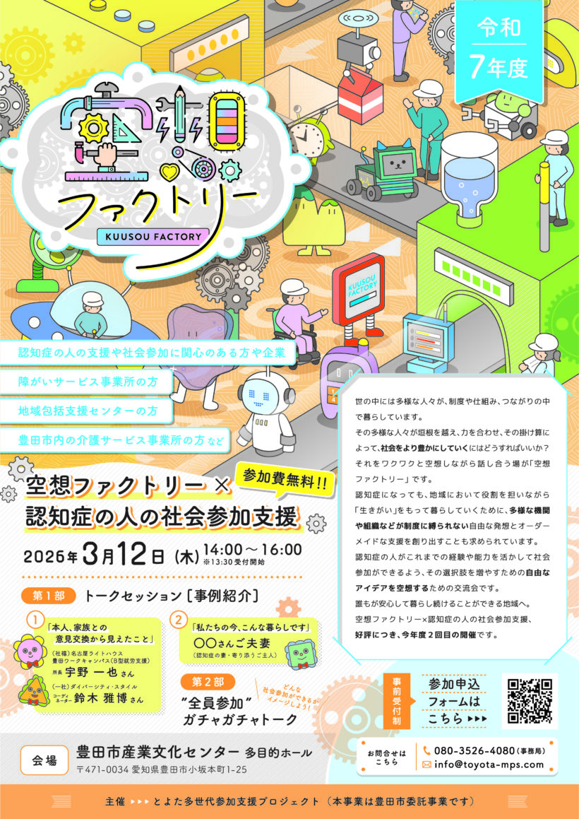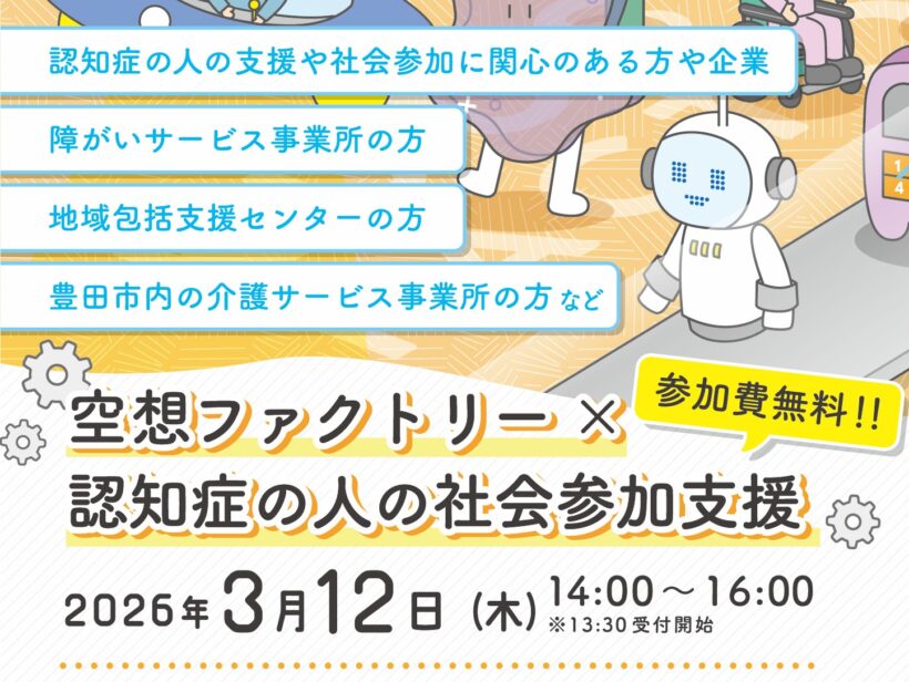 対象:認知症の人の支援や社会参加に関心のある方や企業、障がいサービス事業所、地域包括支援センター、豊田市内の介護サービス事業所の方など