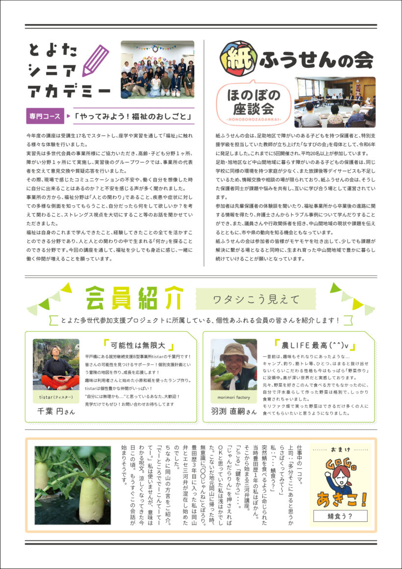 とよた多世代参加支援プロジェクトの取り組みなどを紹介する季刊誌「あっちもこっちもどっちも多世代」です!